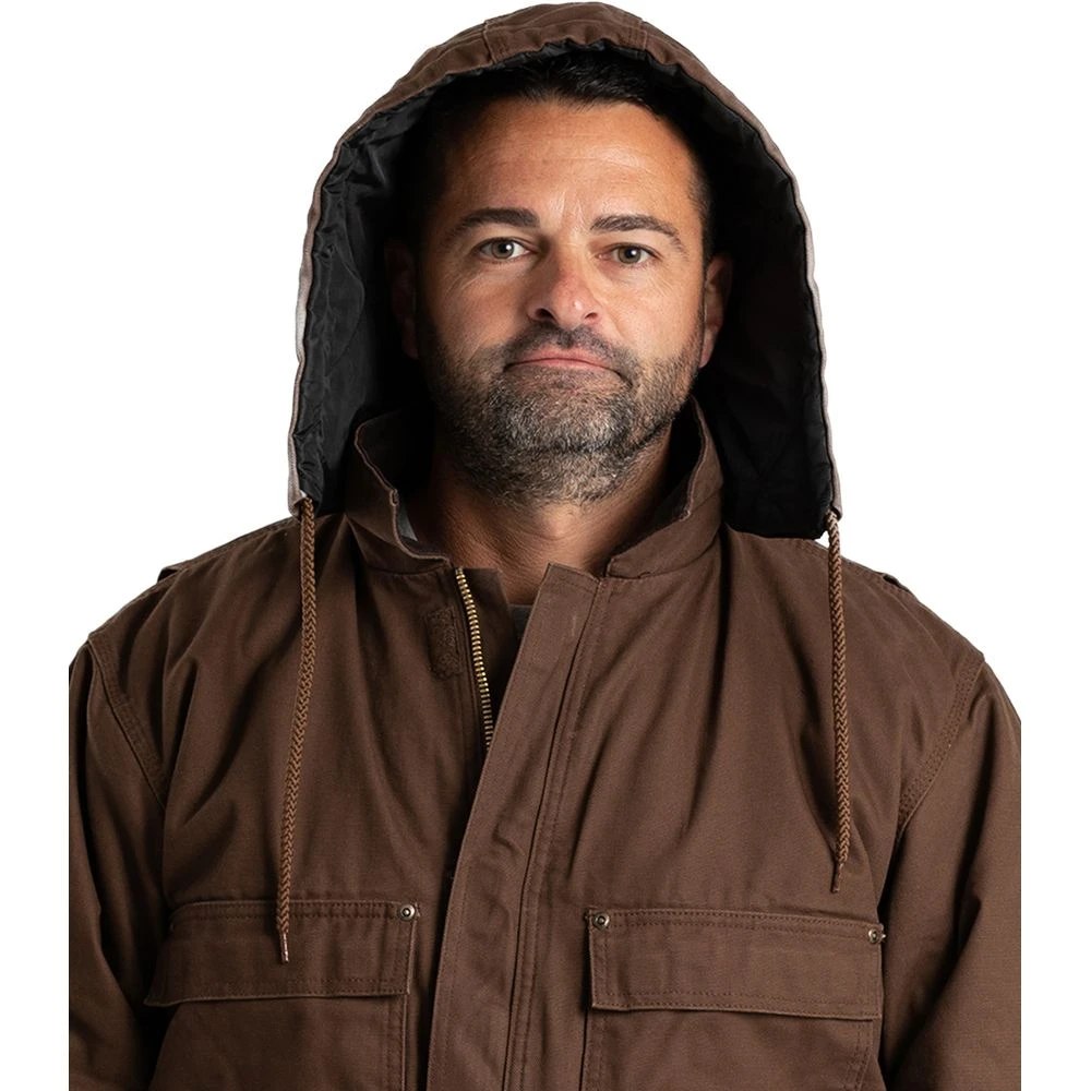 This 100% cotton, washed duck snap-on hood is a perfect addition to any of our standard non-hooded jackets.