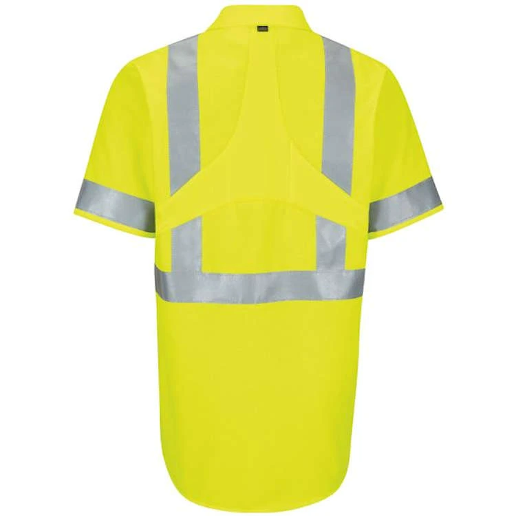 With liquid-repelling fabric that is 75% stronger and 15% lighter than other workwear fabrics, our Short Sleeve Hi-Visibility Ripstop Work Shirt with MIMIX™ and OilBlok sets a new standard for what a work shirt should be. Strategically placed mesh stretch panels provide unmatched maneuverability and breathability while 2-inch reflective silver striping meets Type R Class 2 requirements and ensures 360° visibility.